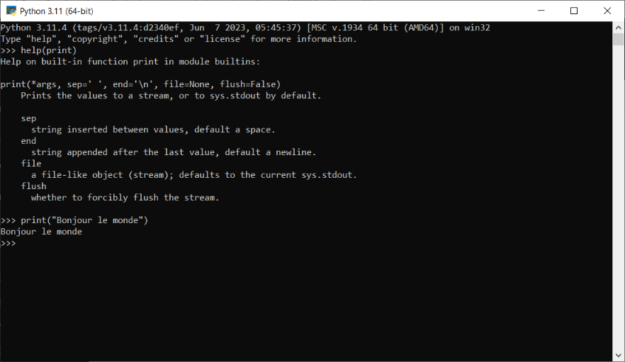 >>> print("Bonjour le monde")